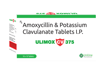 | ULIMOX CV 375 | Amoxycillin 250mg +Clavulanic Acid 125mg Tablets | 10x10's | ![]() |